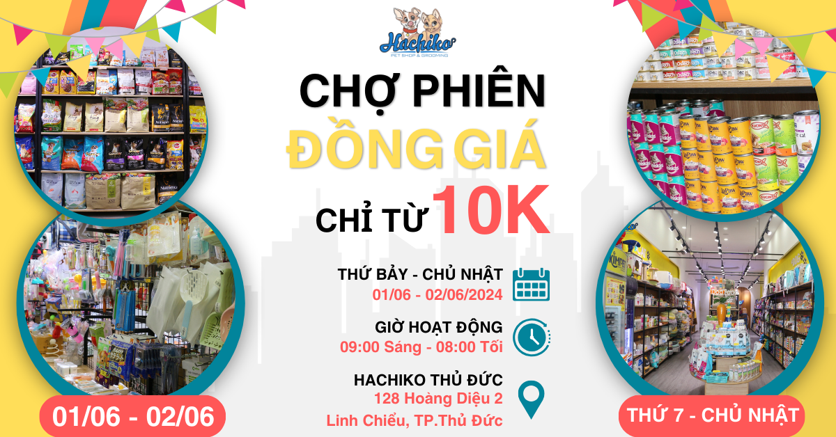 Chợ phiên đồng giá với hàng ngàn sản phẩm hấp dẫn cho thú cưng, từ thức ăn, phụ kiện đến đồ chơi, tất cả đều với mức giá siêu ưu đãi: