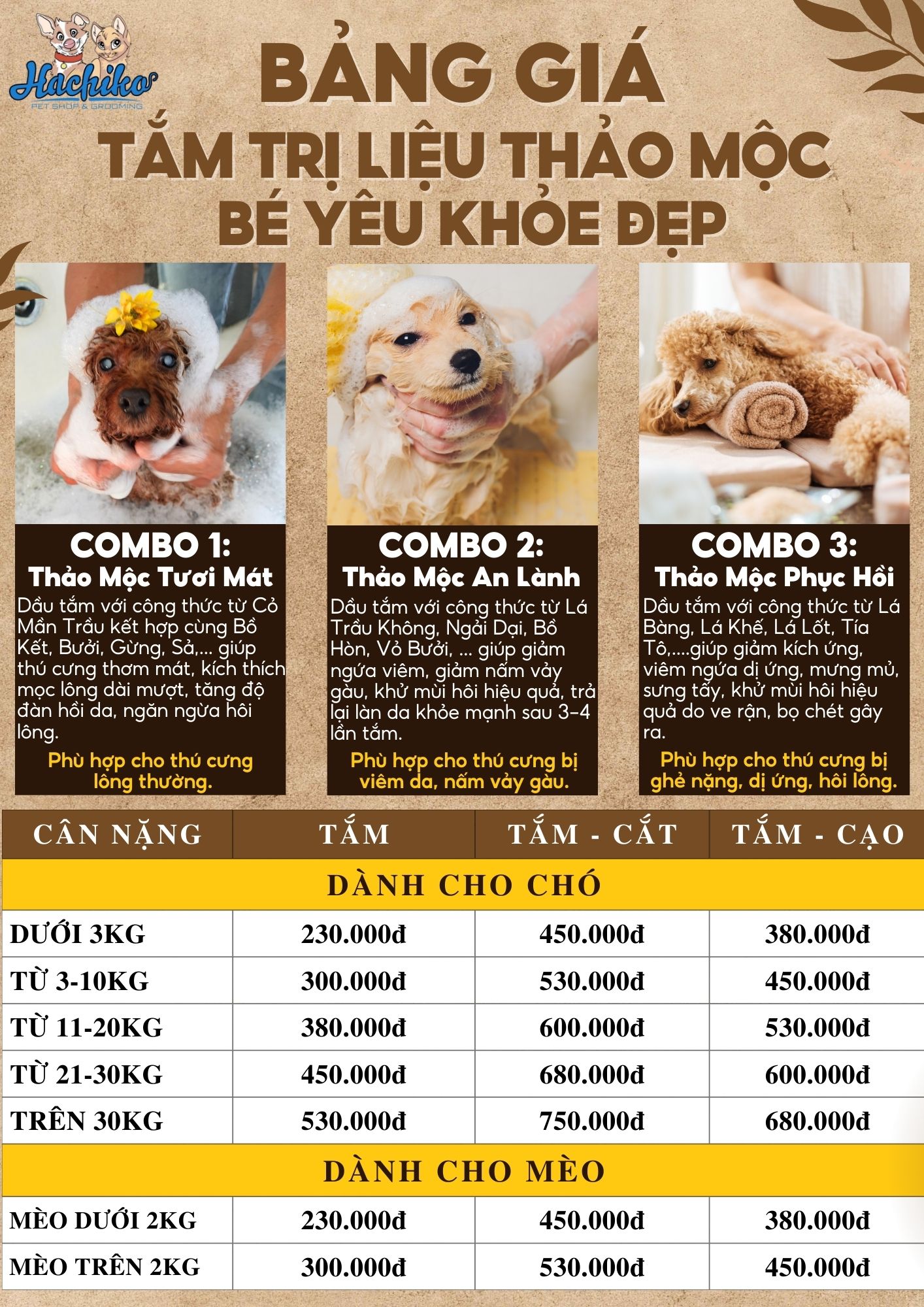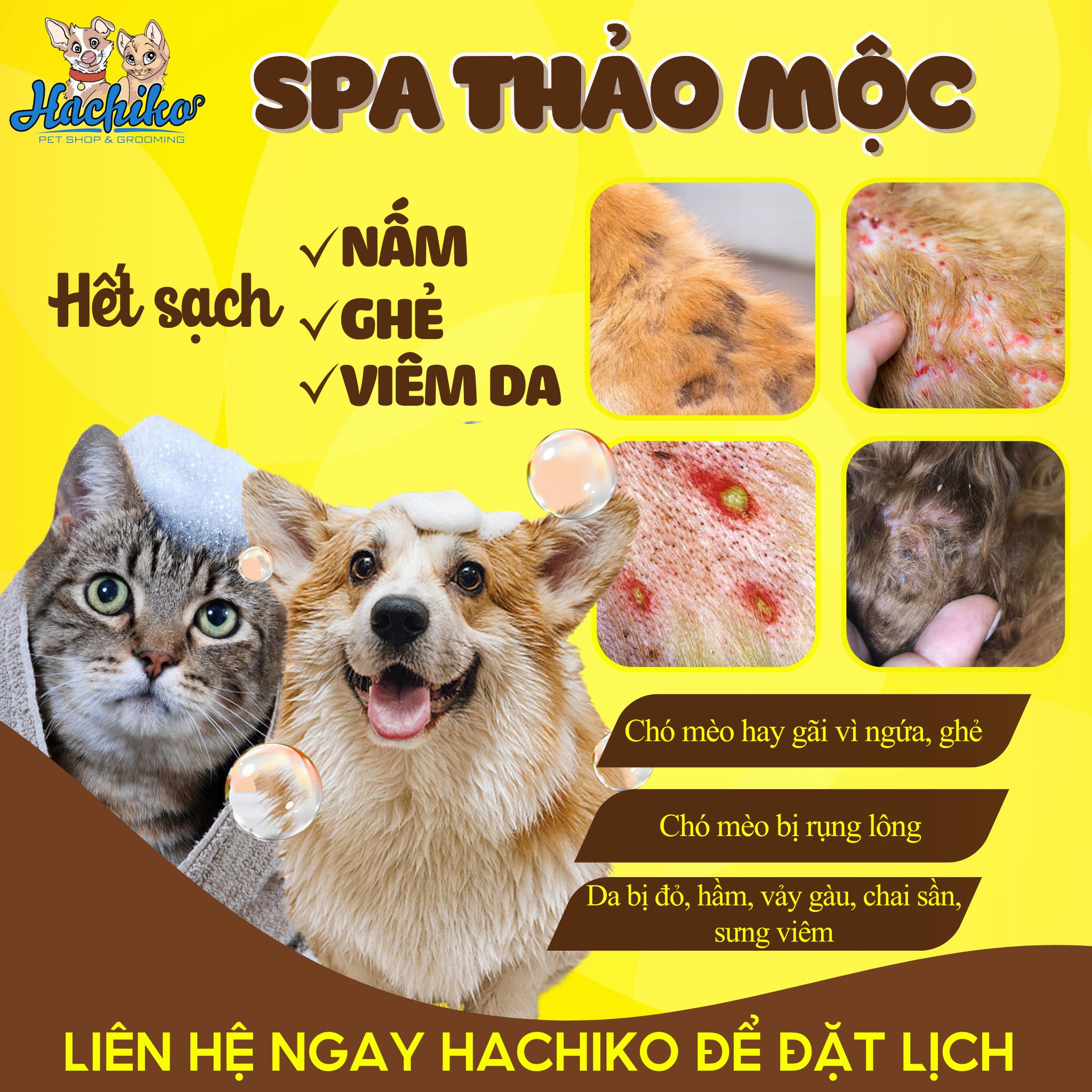 Chăm sóc thú cưng không chỉ dừng lại ở việc đáp ứng nhu cầu ăn uống mà còn cần quan tâm đến sức khỏe làn da và bộ lông của chúng. Tại Hachiko, chúng tôi tự hào cung cấp dịch vụ Tắm Thảo Mộc chuyên biệt, mang lại không chỉ vẻ đẹp bên ngoài mà còn cải thiện sức khỏe da cho "Boss" yêu quý của bạn.