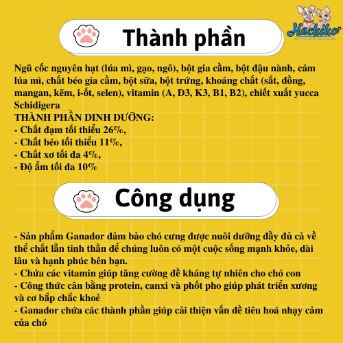 - Chứa các Vitamin giúp tăng cường đề kháng tự nhiên cho chó con