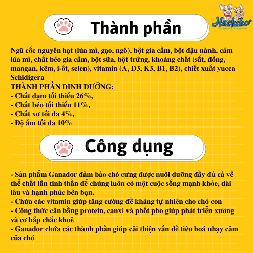 TÊN SẢN PHẨM: Thức ăn hạt dành cho chó con dưới 12 tháng tuổi Ganador Puppy Trứng & Sữa