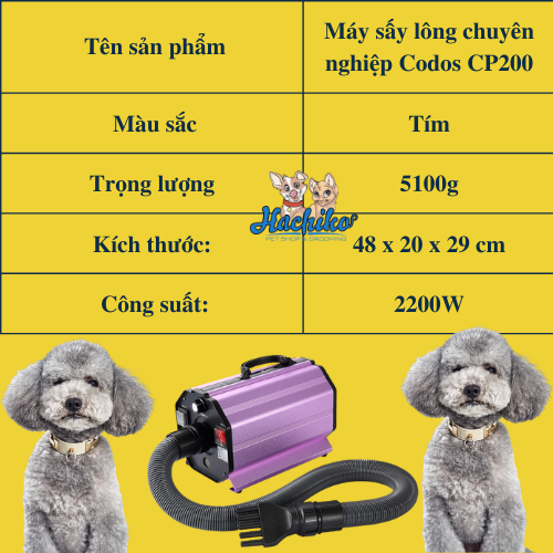 TÊN SẢN PHẨM: Máy sấy lông cho Chó Mèo chuyên dụng CODOS CP200