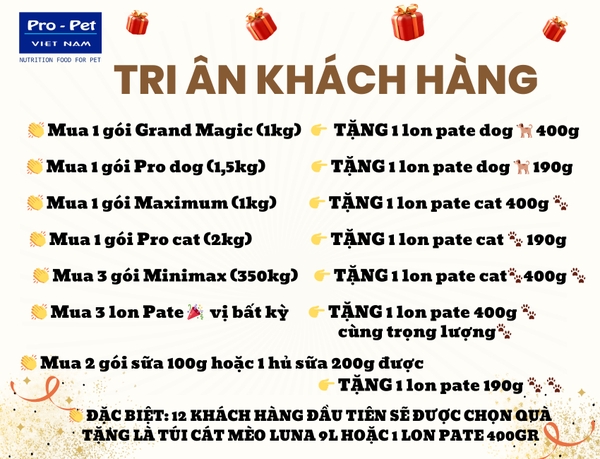 - Mua 1 gói Pro dog (1,5kg) TẶNG 1 lon pate Dog 190g