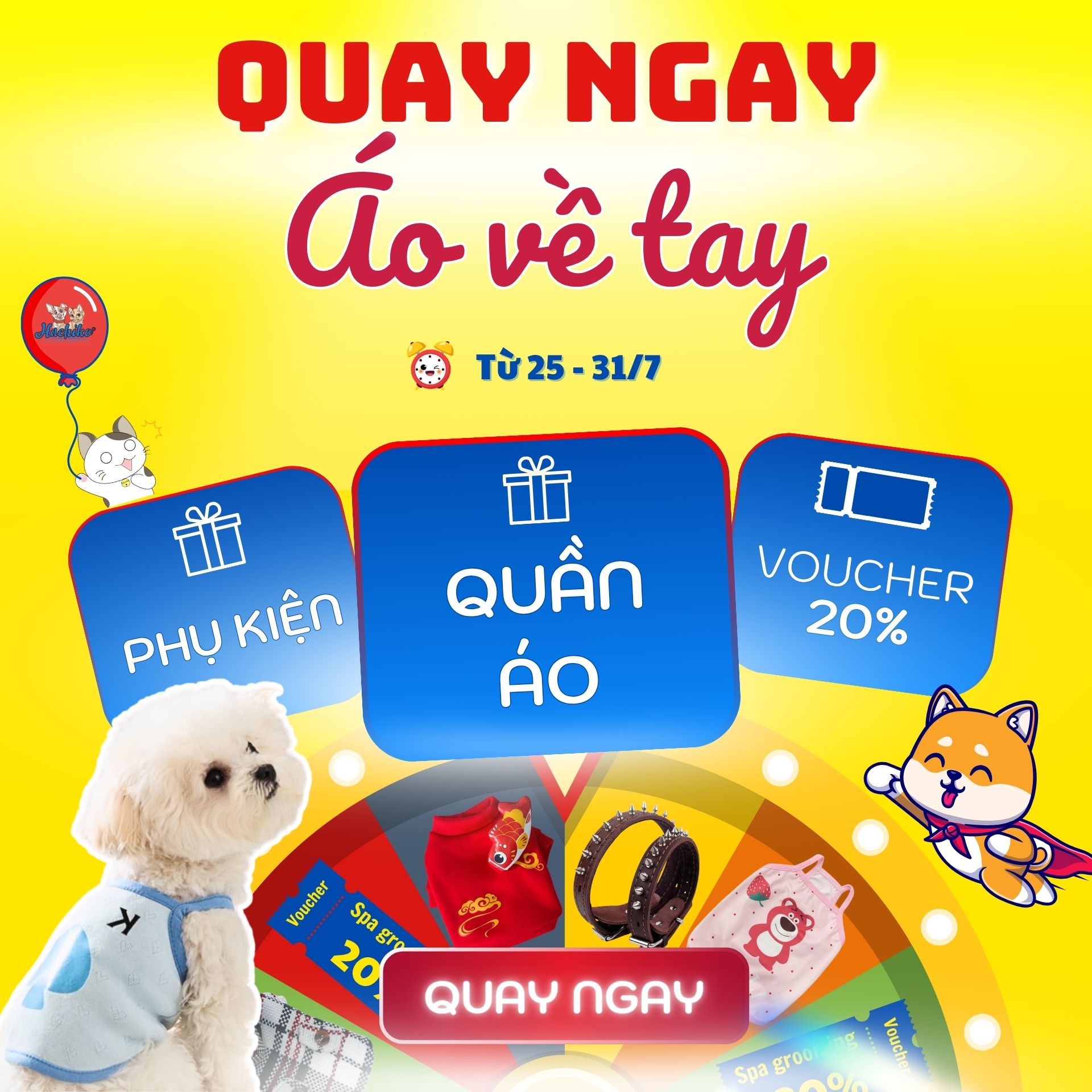 Chỉ với đơn hàng từ 199K, bạn được tham gia Vòng Quay May Mắn 100% trúng quà với loạt quà siêu xịn cho thú cưng: