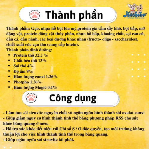 - Giúp giảm nguy cơ hình thành tinh thể bằng phương pháp RSS cho sức khỏe bàng quang ở mèo.