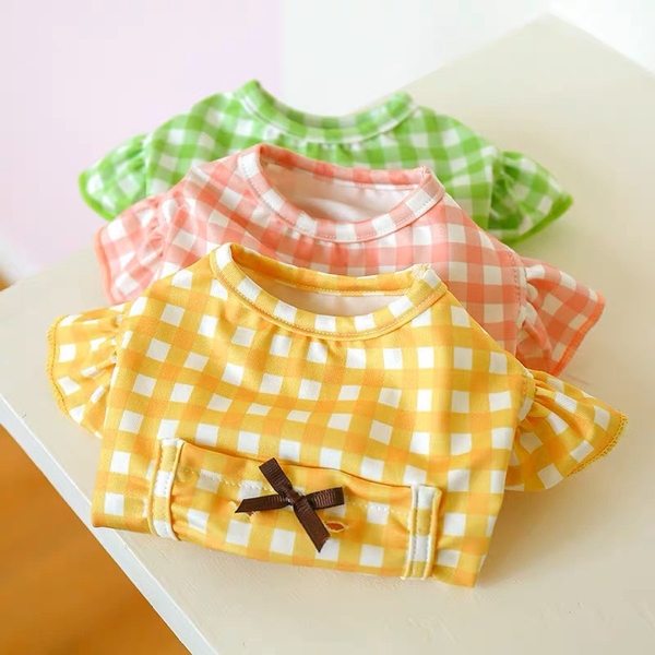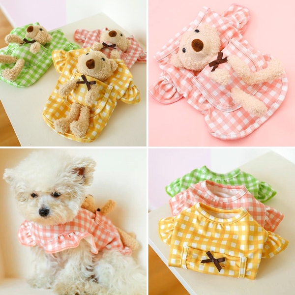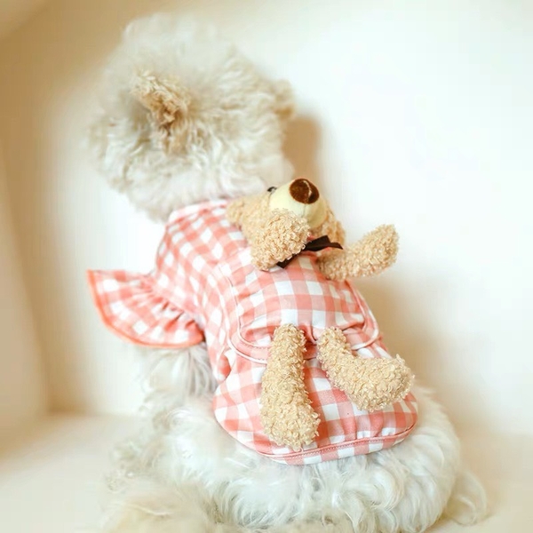 Áo kẻ có túi kèm gấu bông chó Chó Mèo