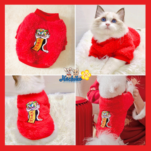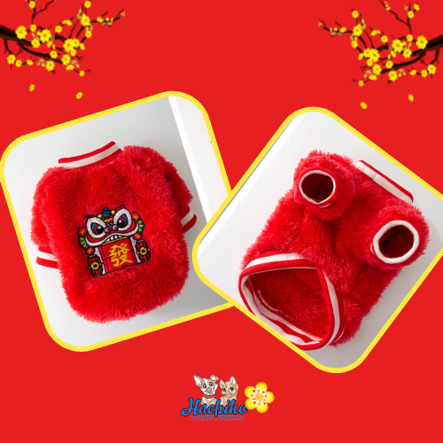 Áo lông hình con lân cho Chó Mèo mang Tết