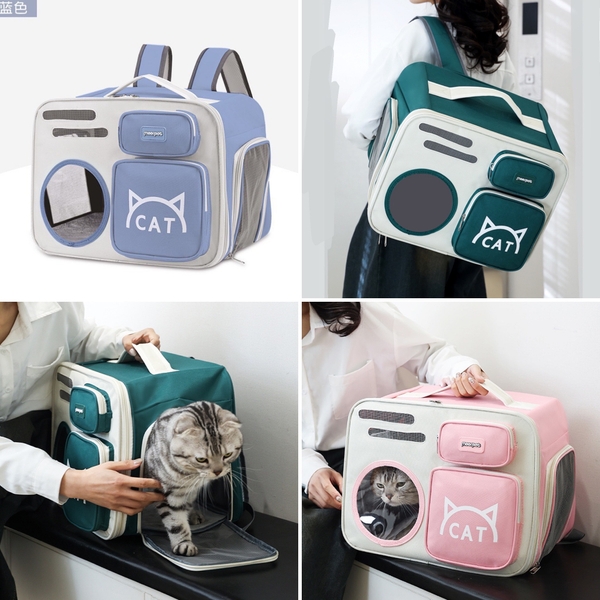 Balo chữ nhật có túi nhỏ in mặt mèo 40*30*6cm