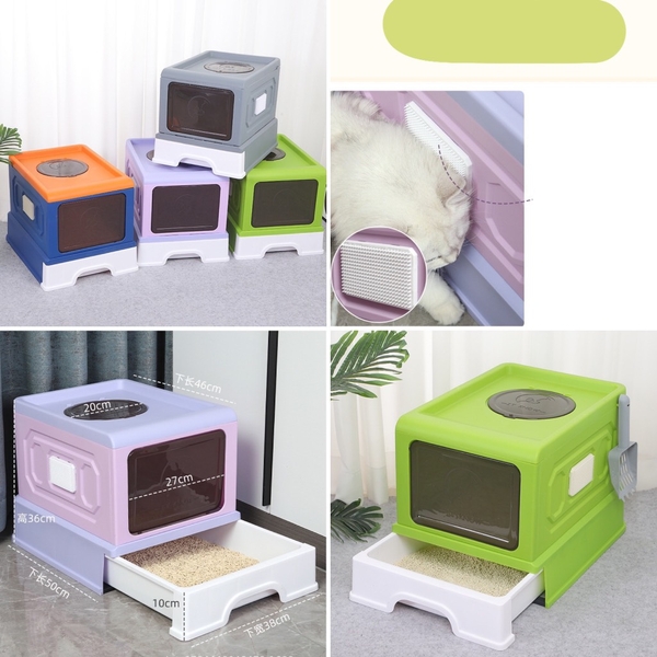 Nhà vệ sinh chữ nhật gắn bàn cọ cho mèo 50*38*38cm