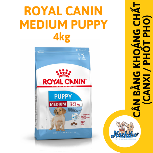 - Thức ăn hạt ROYAL CANIN Medium Puppy đáp ứng nhu cầu năng lượng cao của giống chó size medium có thời kỳ sinh trưởng ngắn và nhu cầu năng lượng cao này.