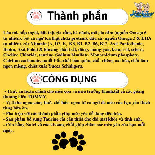 TÊN SẢN PHẨM: Thức ăn dành cho mèo con & mèo lớn vị cá ngừ TOMMY Tuna flavor KITTEN & ADULT